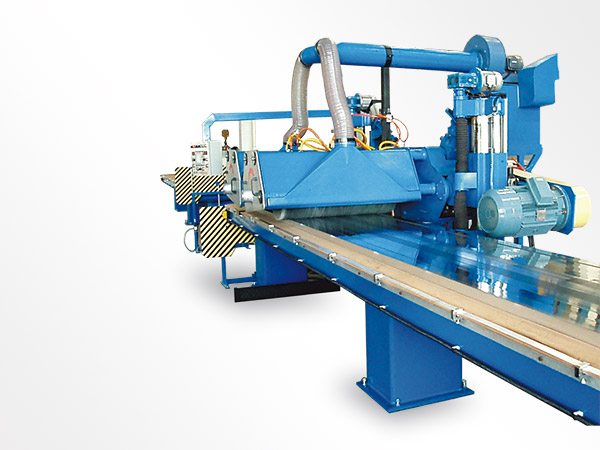 設備由兩組高速旋轉的布輪或尼龍輪組成,型材表面與拋光輪間有 拋光劑(液態或固態)磨料,可以得到鏡面或鍛面(拉絲)狀態的表面。 采用特殊設計,大平面拋光的橫向移動,能顯著提高表面拋光質量。